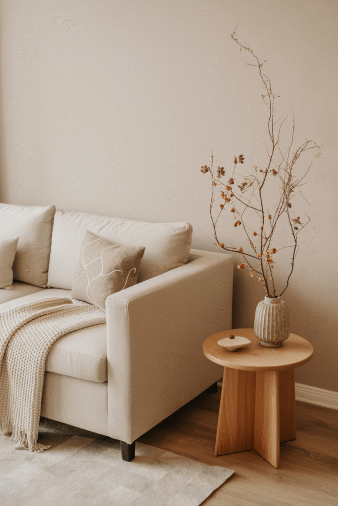 - Pick a neutral or muted base for walls and large furniture. Beige, warm white, or soft gray creates a calm backdrop.