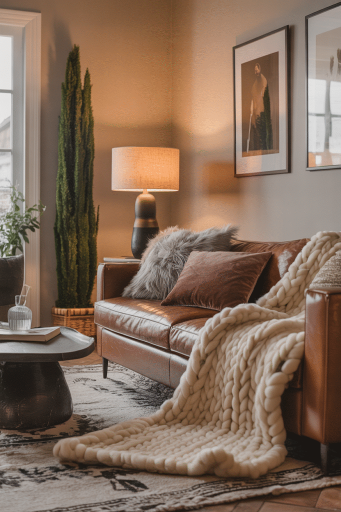 - Soft textures: Think plush rugs, knit poufs, and soft cushions. They create a grounding effect.
